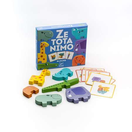 Ze Totanimo — деревянная игра на равновесие и пространственное восприятие. Для детей есть шесть деревянных животных, с которыми можно играть и воссоздавать стопки, показанные на карточках-моделях. Несколько уровней для детей от 3 лет и старше.
