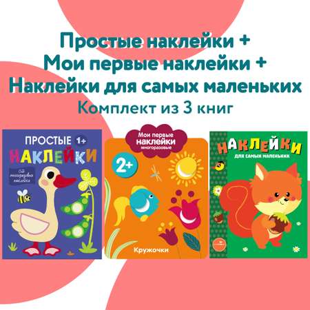 В комплект входят:Наклейки для самых маленьких.Вып.10 Белочка;Простые наклейки.Вып 2.Гусь;Мои первые наклейки многоразовые 2+Кружочки