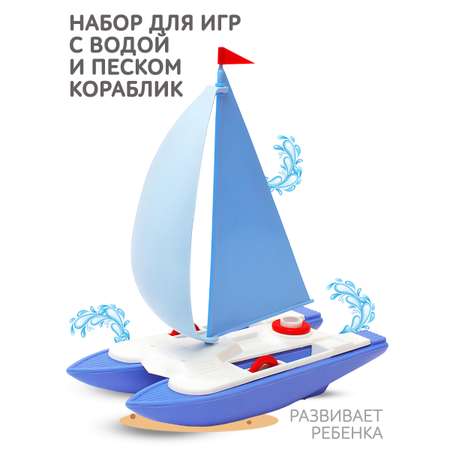 Яркий кораблик парусник для веселых игр с водой и песком. Игрушку удобно взять с собой в песочницу или на пляж. Это также необходимый атрибут для купания - с корабликом ваш малыш будет принимать водные процедуры с удовольствием. Специальная конструкция игрушки позволяет катамарану хорошо держаться на воде и хорошо плавать даже на больших волнах. Вариантов игр с такой игрушкой множество: швартовать паром в порту, играть в пиратов или морской круиз в песочнице или другие, которые точно придумают дети самостоятельно. Такие игры развивают у детей мелкую моторику, воображение и фантазию. А еще с корабликом можно изучать цвета и делать первые шаги в счёте. Игрушка не имеет острых краёв, поэтому безопасна для детей от 1 года. Изготовлена из качественного и прочного пластика. Все аксессуары выполнены из безопасного и нетоксичного пластика. Пластик ABS не способен вызвать аллергию или раздражение, поэтому подходит для детей разного возраста. Набор с лодочкой - интересный вариант подарка ребенку на новый год, день рождения, 8 марта, 23 февраля, выпускной в детском саду, 1 сентября или просто так без повода. У вашей крестницы или племянницы скоро праздник, а вы еще не определились с подарком? Обратите внимание на наш подарочный набор Корабль - он обязательно понравится малышам, школьникам и дошкольникам. Играйте с удовольствием!