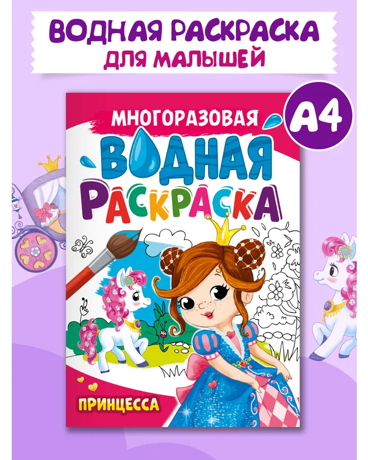 Раскраски Проф-Пресс 6 шт. А4. для малышей+волшебный мир+пони+принцессы+кавайи+кошки и собаки